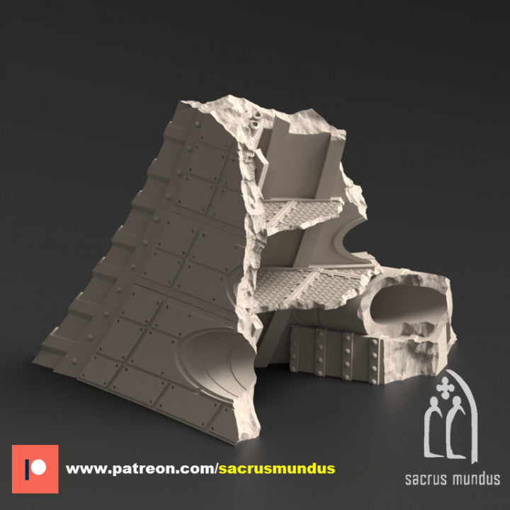With gothic spires, armored hull plating, and weathered battle damage, Engine Fragment A and Engine Fragment B bring the sense of a fallen colossus to your battlefield, ideal as cover, objectives, or centerpiece terrain in futuristic or grimdark settings.